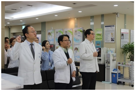 병원장님의 격려의 말씀을 끝으로 오늘도 활기찬 구호와 함께