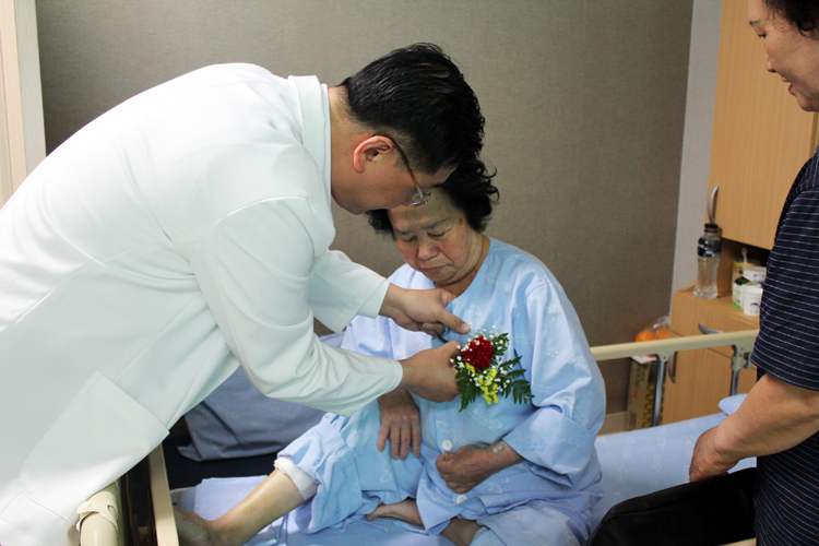 50세 이상의 환자분들을 대상으로 준비한 카네이션을 원장님들께서 직접 달아주셨어요.
