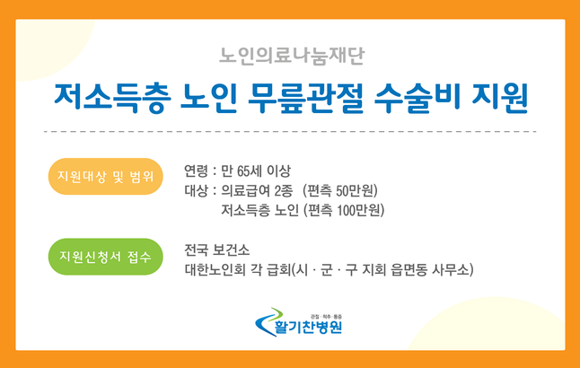 활기찬병원은 무릎관절 수술비 지원 일반 의료기관으로