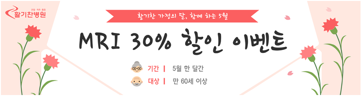 *5월 가정의 달 맞이, MRI 30% 할인 이벤트* ▶ MRI 30% 할인 이벤트, 60세 이상 어르신분들께 해당!