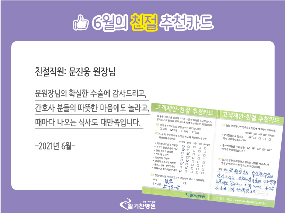 [이달의 친절추천카드] 고객님이 남겨주신 6월 친절추천카드 메세지입니다.