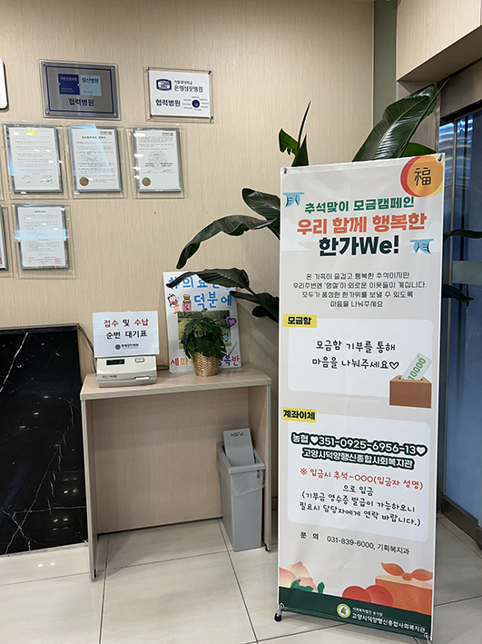 병원 내 모금함을 비치하였으니 많은 관심 부탁드립니다.