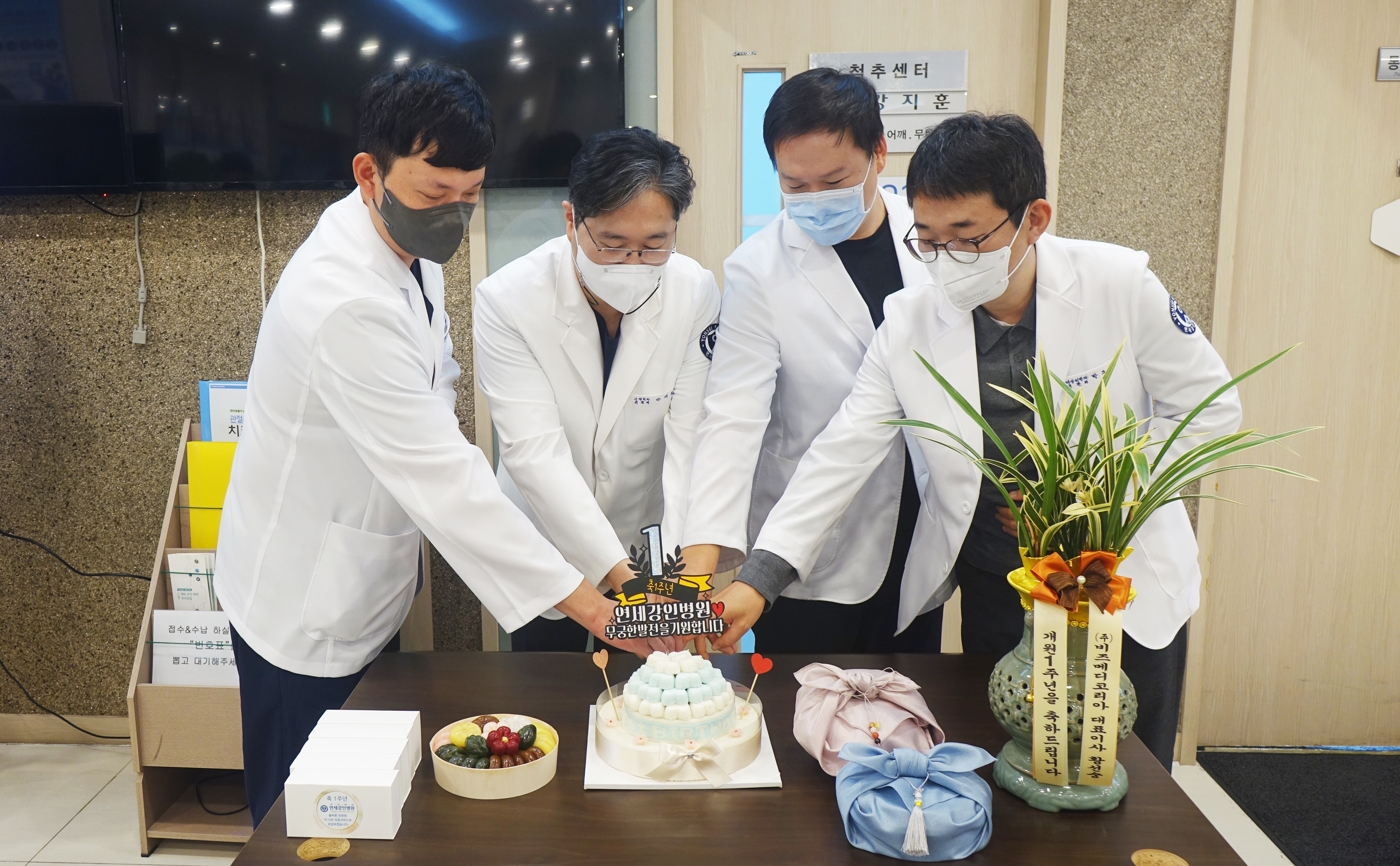 원장님들의 개원 1주년 기념일 케이크 커팅으로 축하 분위기는 무르익었는데요,