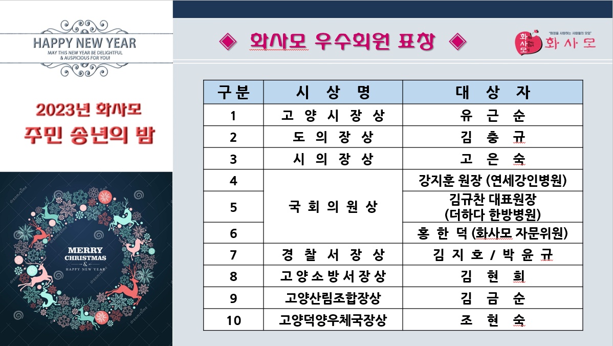 '2023년 화사모 주민 송년의 밤'에 초대되어 참석했습니다:)