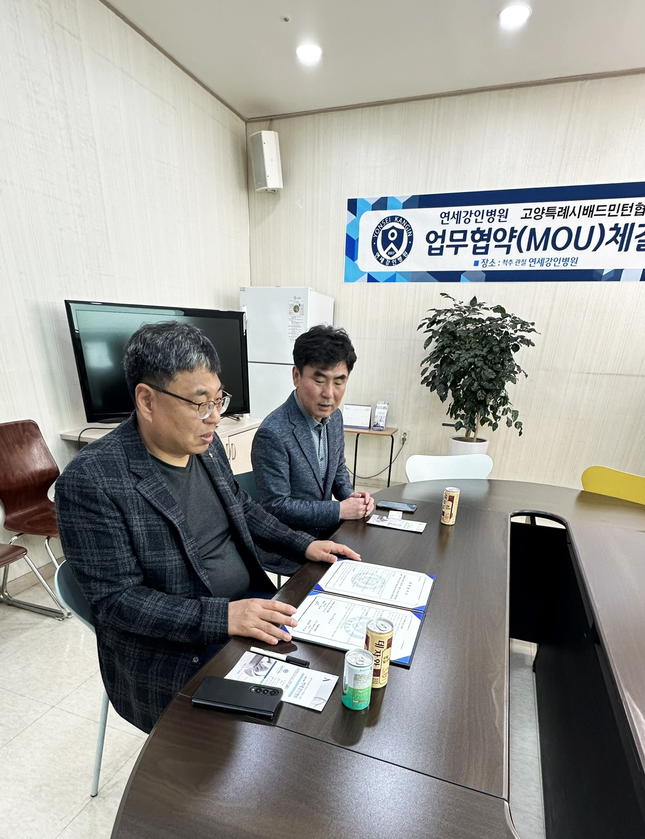 이번 협약식에는 연세강인병원 강지훈 병원장님과 박인영 총괄이사님, 이윤행 행정부장님