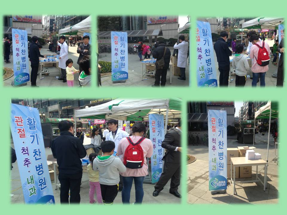 식전행사로 고양 송포 호미걸이 풍물보존회와 난타 4인조의 흥겨운 식전공연이 펼쳐졌구요 걷기 대회후 인기 개그맨 변기수씨의 진행으로 식후행사와 다양한 경품 추첨이 진행되었습니다. 걷기대회 집결지(종결)에서 활기찬병원은 행사에 참여하신 분들께 기념품을 배포하였습니다. 고양시 시민들에게 받은 응원과 사랑을 되돌려드리고자 작은 기념품을 전해드렸습니다. 앞으로도 활기찬병원은 고양시민들의 관절/척추 건강을 책임지며, 보다 활기찬 여러분들의 생활을 약속하겠습니다.