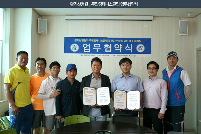 2014년 6월 9일(월) 관절,척추 전문병원 활기찬 병원이 두만강테니스클럽과 MOU체결을 맺게되었습니다.