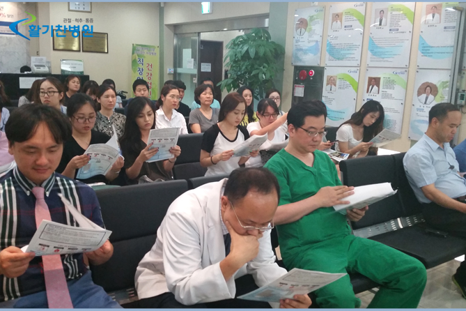 진지하게 듣고 있는 활기찬병원 식구들 입니다!