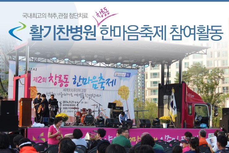 창릉동한마음축제,활기찬 병원 의료지원활동! 세계 文化유산의 고장 창릉동의 가을 이야기로 여러분을 초대 합니다. 지난 9월 21일, 호반마을 중앙광장에서는 제2회 창릉동 한마음축제가 열렸습니다. 이날 창릉동한마음 축제에서는 낭만콘서트와 주민 노래자랑, 나눔장터, 먹거리장터, 무료체험부스 운동 등 다양한 행사가 진행되었는데요. 저희 활기찬병원에서도 무료 골다공증 검사를 진행하여 창릉동 주민들의 많은 관심을 받았답니다.