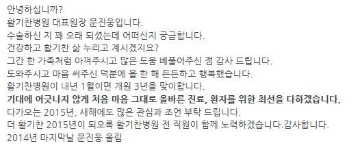 고객을 행복하게 "활기찬병원" 12월 친절우수직원!