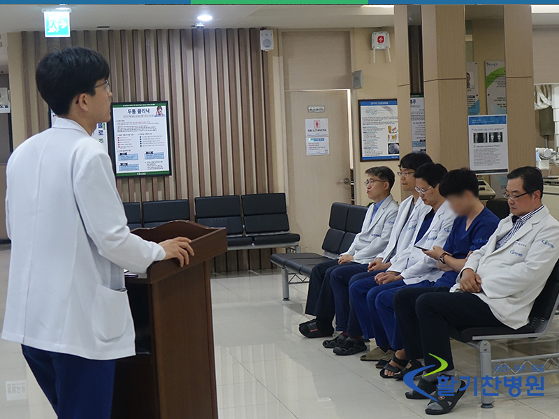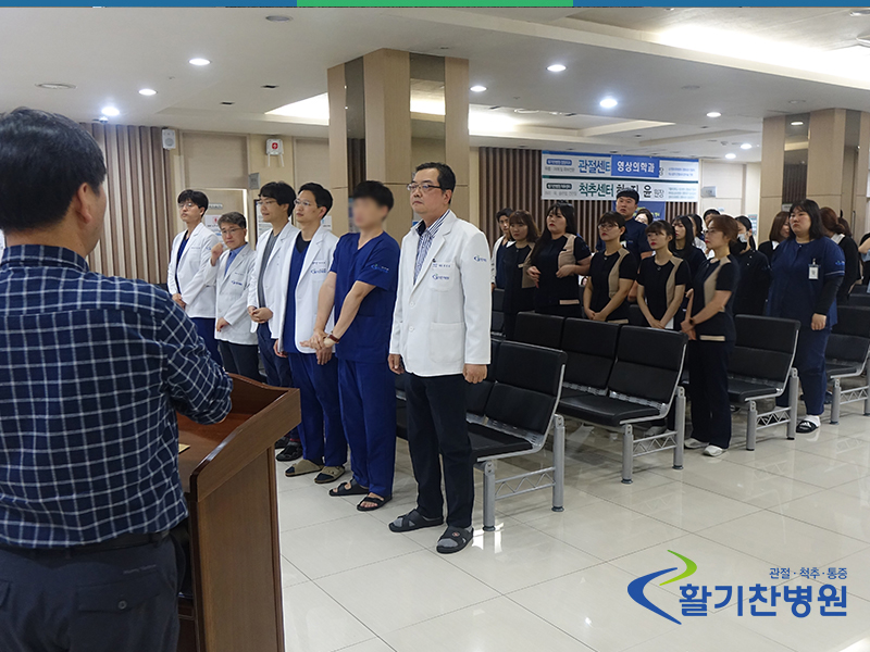 오늘 있었던 활기찬병원의 8월 월례조회 시간에 훈훈한 사진 한 장이 올라왔습니다.