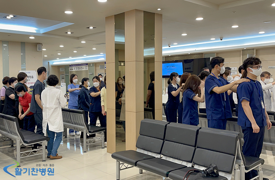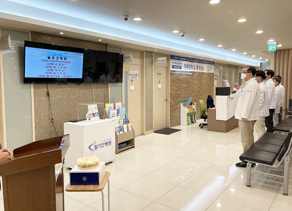 마지막으로 활기찬 병원의 슬로건을 큰 목소리로 제창하면서 뜻깊은 9월 월례조회를 마쳤습니다.
