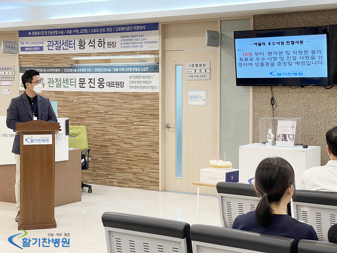 첫 번째 소식은 10월부터 '이 달의 우수사원, 친절사원을 환자분들과 직원분들이 직접 뽑게 됩니다.