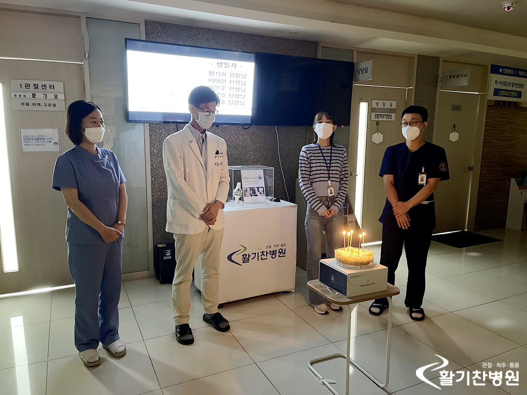 오늘 본원 4층 로비에서 9월 월례조회 및 생일자 축하, 신규 직원 소개가 있었습니다.